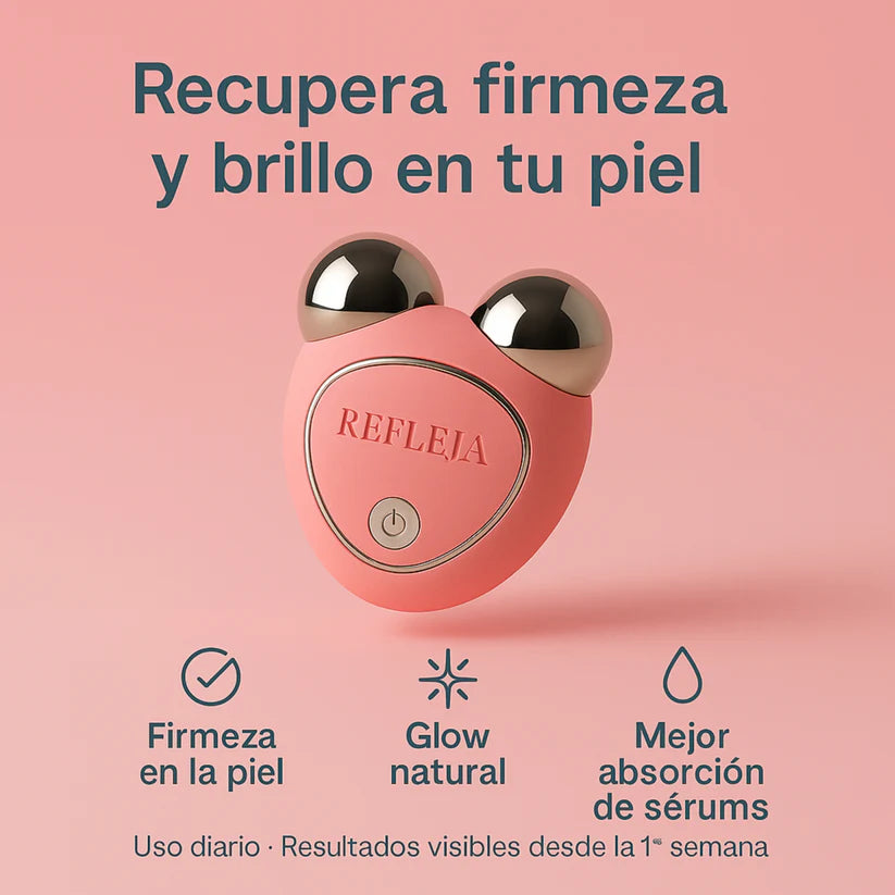 Refleja GlowLift es la solución que tu rostro estaba esperando. Su tecnología de microcorrientes activa la producción natural de colágeno y elastina, logrando que la piel recupere firmeza y suavidad en muy poco tiempo. Con solo 5 minutos al día, verás cómo las líneas se suavizan y tu rostro luce más descansado y joven. Es un pequeño hábito que transforma tu piel y tu confianza frente al espejo.